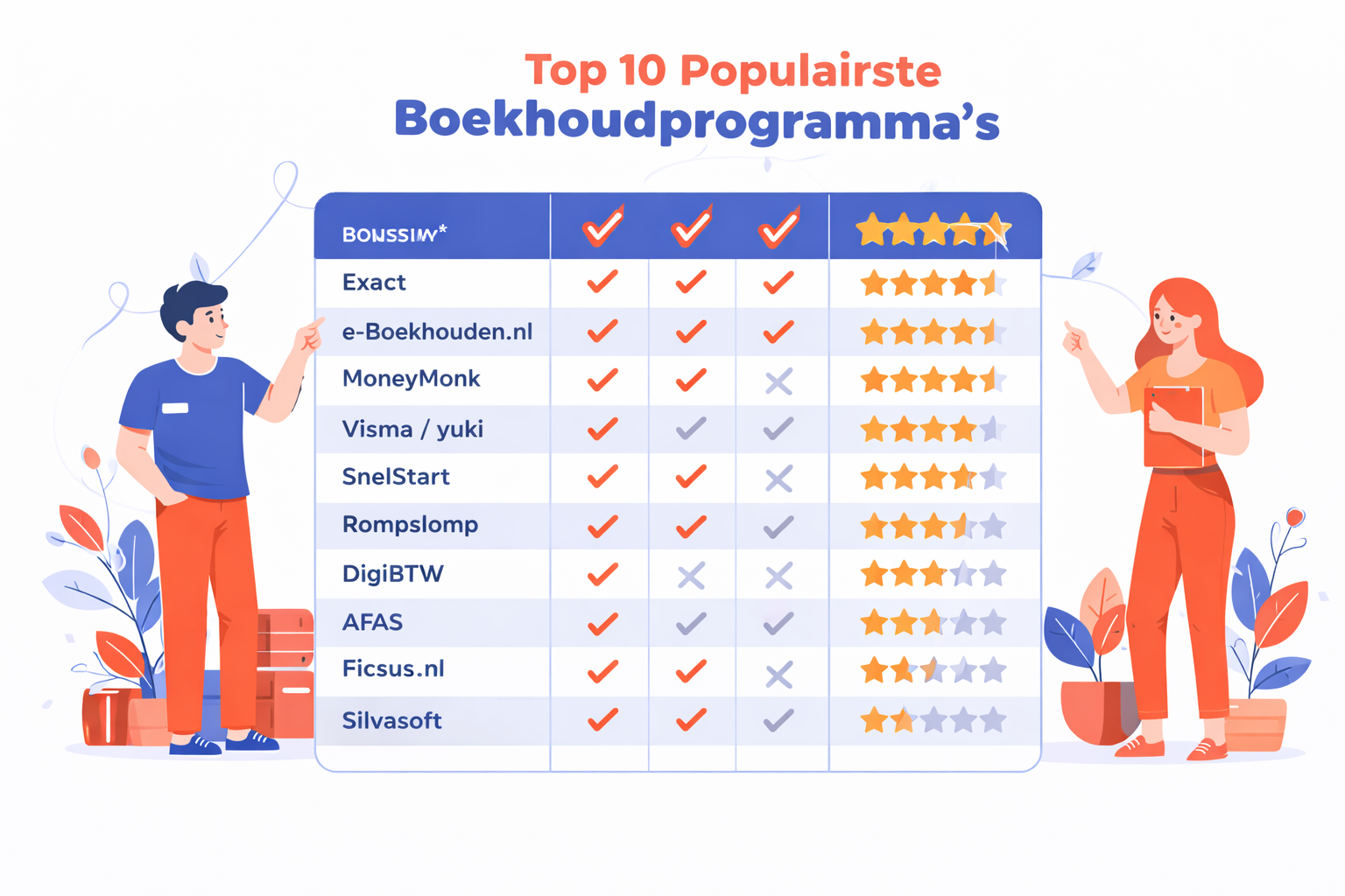 Het kiezen van het juiste boekhoudprogramma kan lastig zijn. Daarom hebben wij de populairste software voor Nederlandse ondernemers vergeleken op prijs, gebruiksgemak en functies.